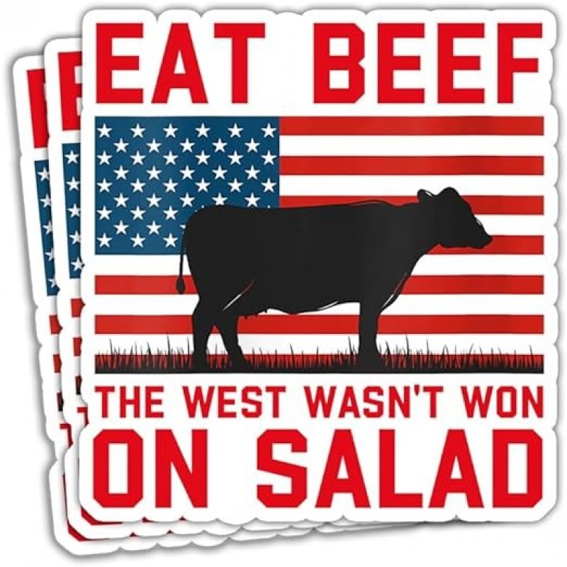 SODAVA (3 件套)Eat Beef The West Wasn't Won On Salad 贴纸烧烤吸烟者烧烤美国国旗贴纸烧烤吸烟肉类爱好者贴纸礼品装饰保险杠贴纸 7.62 厘米 x 10.