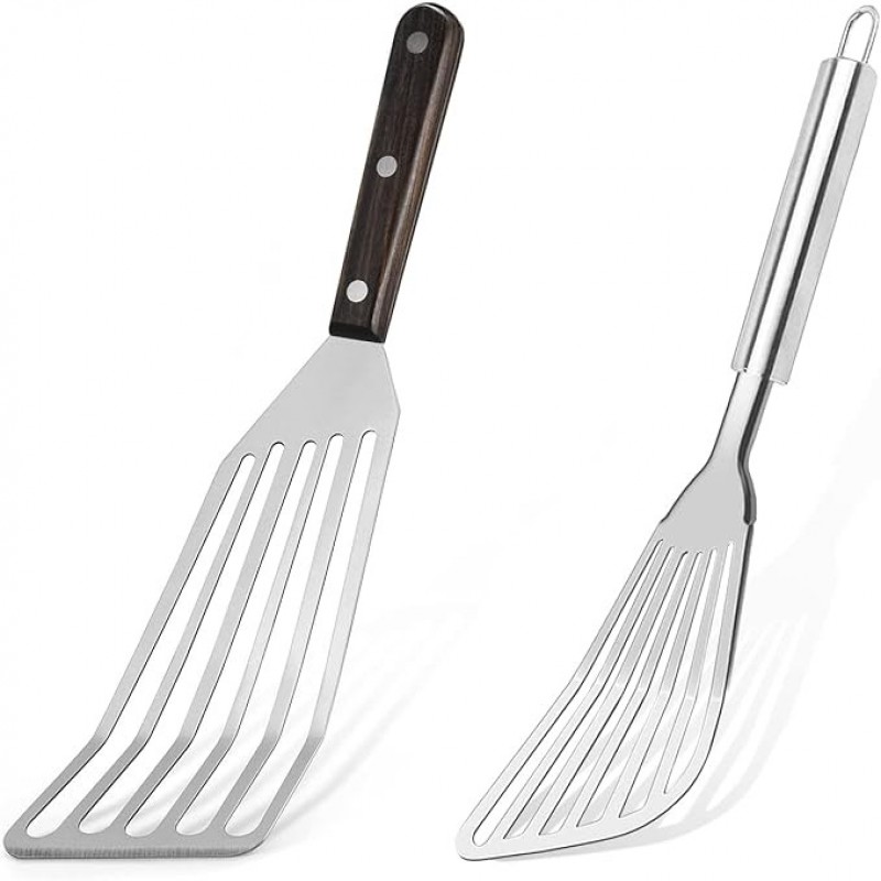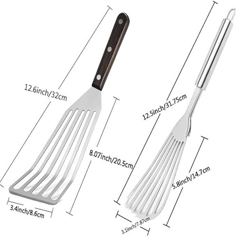 TENTA TENTA KITCHEN 2 件套不锈钢鱼铲和鱼铲木柄和不锈钢手柄开槽铲烧烤煎锅铲,用于烹饪鱼/肉类/饺子
