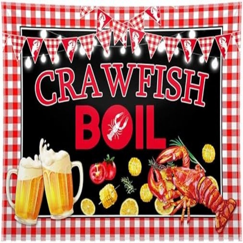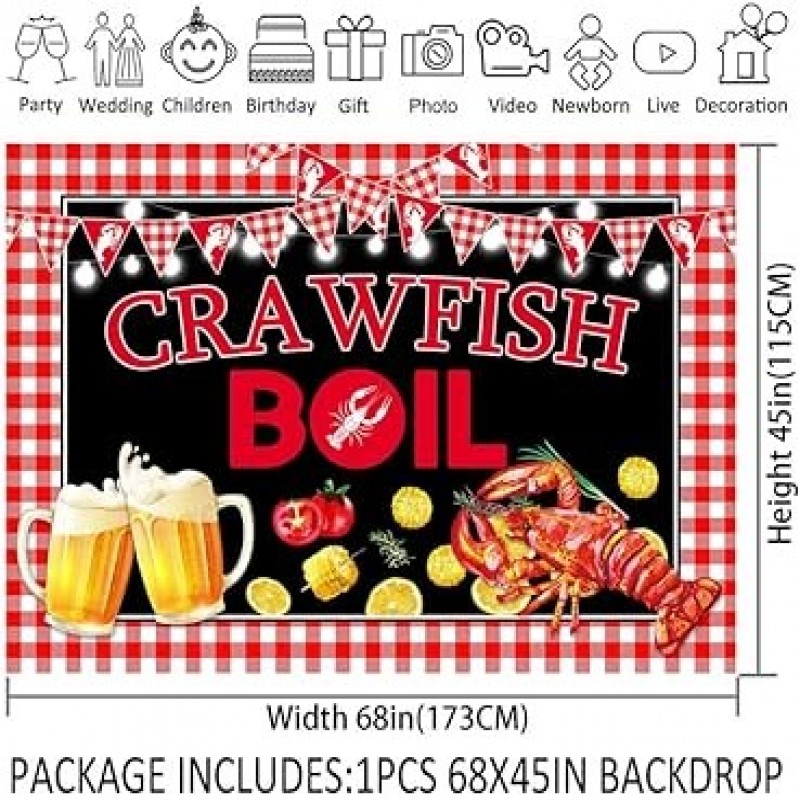 YCUCUEI 68x45 英寸(约 172.7x114.3 厘米)小龙虾海鲜横幅背景烧烤啤酒户外派对装饰生日用品照相亭道具